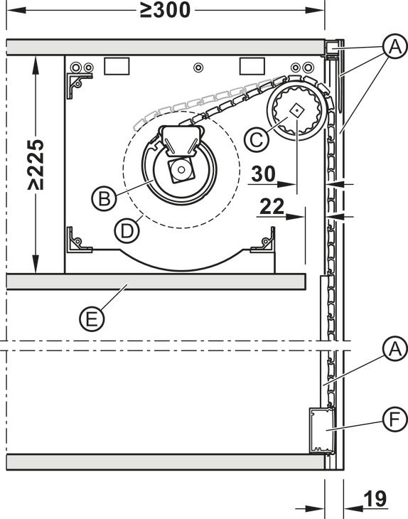 Механізм противаги, з опорою та пружинним валом, для існуючих пластикових ролетних дверей, для ширини шафи 967 мм, включаючи зелений (лівий) та червоний (правий) пружинні блоки., 442.06.521