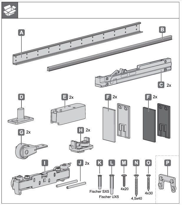 Прихована система для розсувних дверей MAGIC 2, Hafele Slido D-Line43 80M комплект з ходовою доріжкою для 1 дверного полотна, прихована ходова система, для дверей вагою до 80 кг, ширина полотна до 1100 мм, (940.59.008) 8302420090