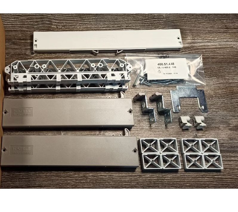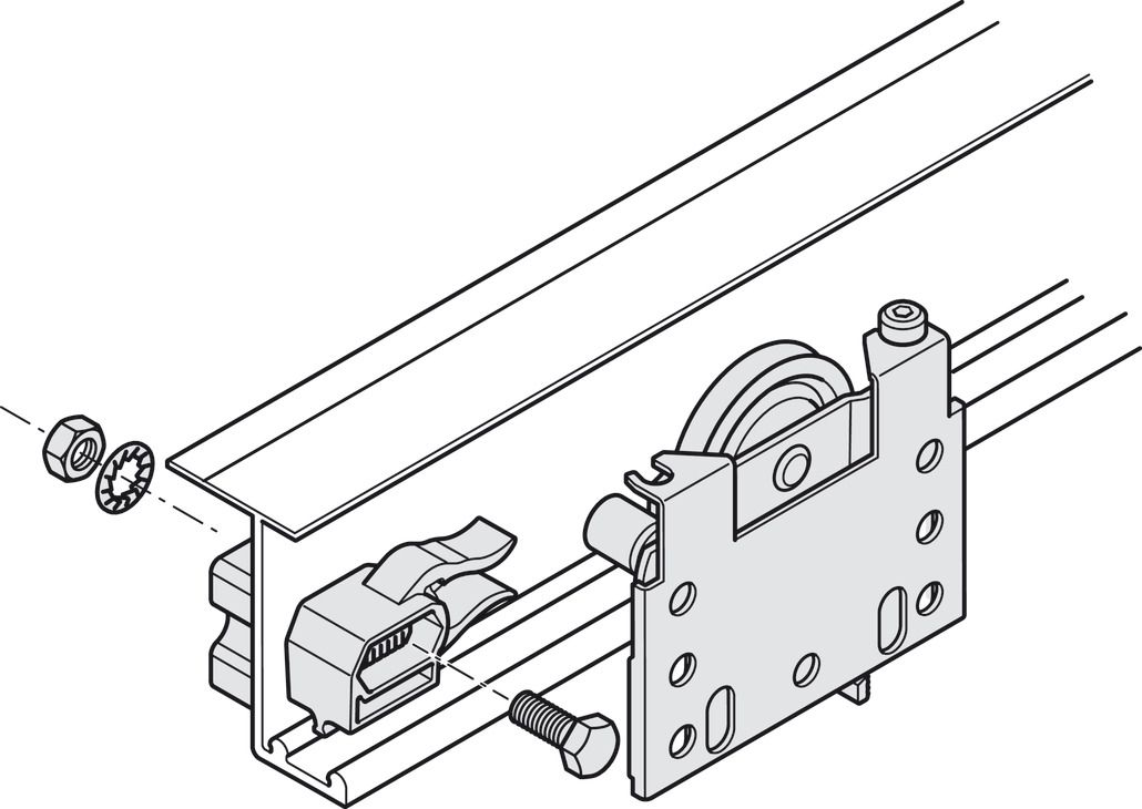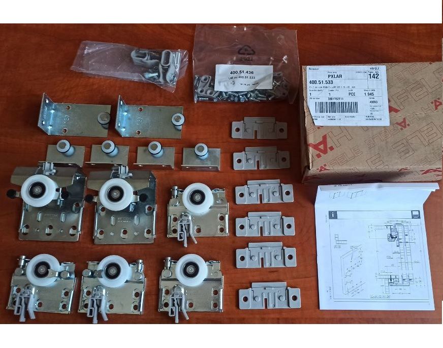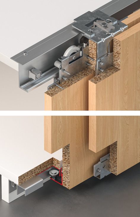 Фурнітура для 3- х розсувних дверей, Häfele Slido F-Line42 50A для дерев'яних розсувних дверей, передня панель, з механізмом плавного закриття з одного боку, товщина дверного полотна 16–22 мм, 400.51.563 складається з 400.51.533 + 400.51.545