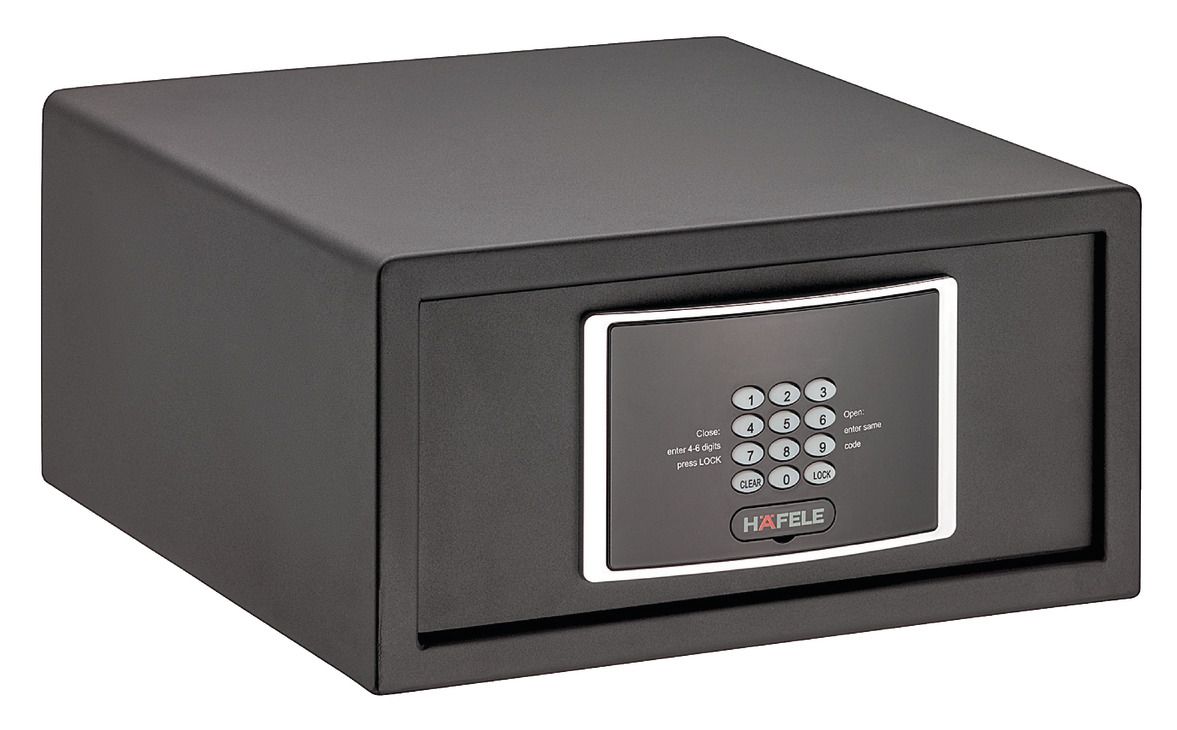Готельний сейф, чорний, Зовнішні розміри (В x Ш x Г): 200 x 405 x 410 мм, вага 14,5 кг, 836.23.351