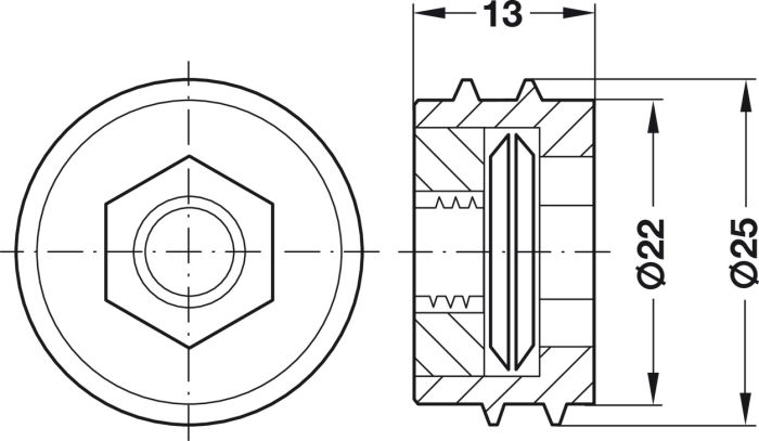 Муфта для вкручування M8/22x13мм, SW12, цинк (030.11.008), 7318190090 | Гвинтова втулка, з внутрішньою різьбою М8, цинковий сплав, зі сталевою пружиною Внутрішня різьба: М8, довжина: 13 мм