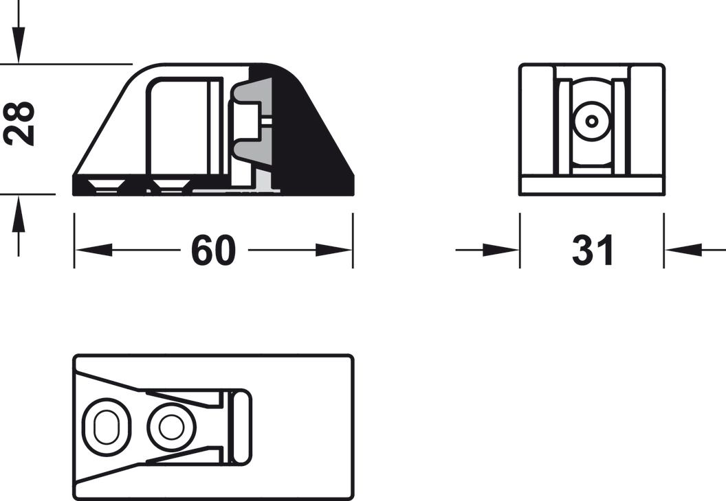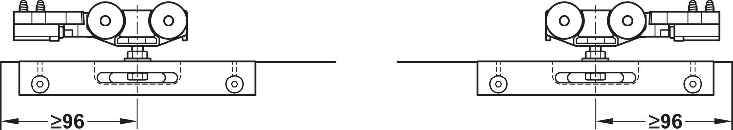 Фурнітура для розсувних дверей, Slido D-Line11 50J, комплект без ходової шини, для дверей вагою 50 кг, без механізму плавного та самозакривання, ходова частина з підшипником осі, буфер направляючої з утримуючою пружиною, ширина дверей: від 510 мм, 940.42.083
