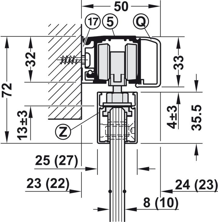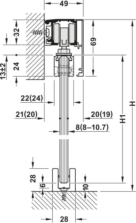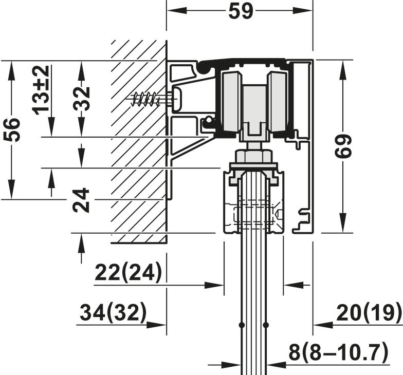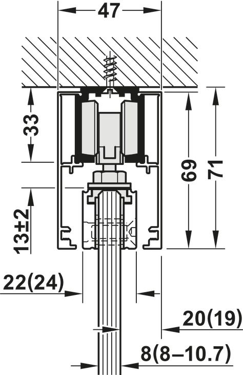 Галузь застосування: для 1-стулкових та 2-стулкових розсувних дверей
