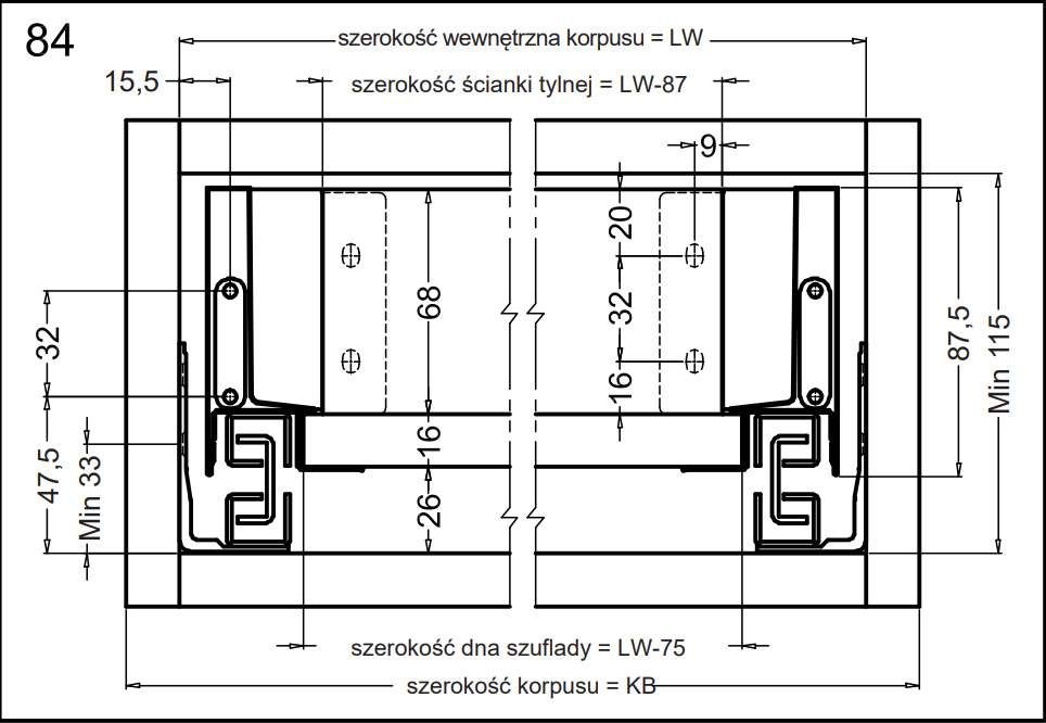 Висота стінки ящика:84
