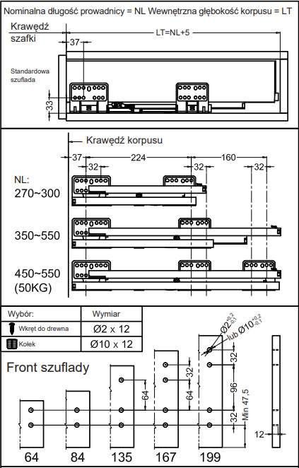 Комплект середньо-високої шухляди Matrix S Slim 2.0 H167 L550, 35 кг, Білий, 514.14.826
