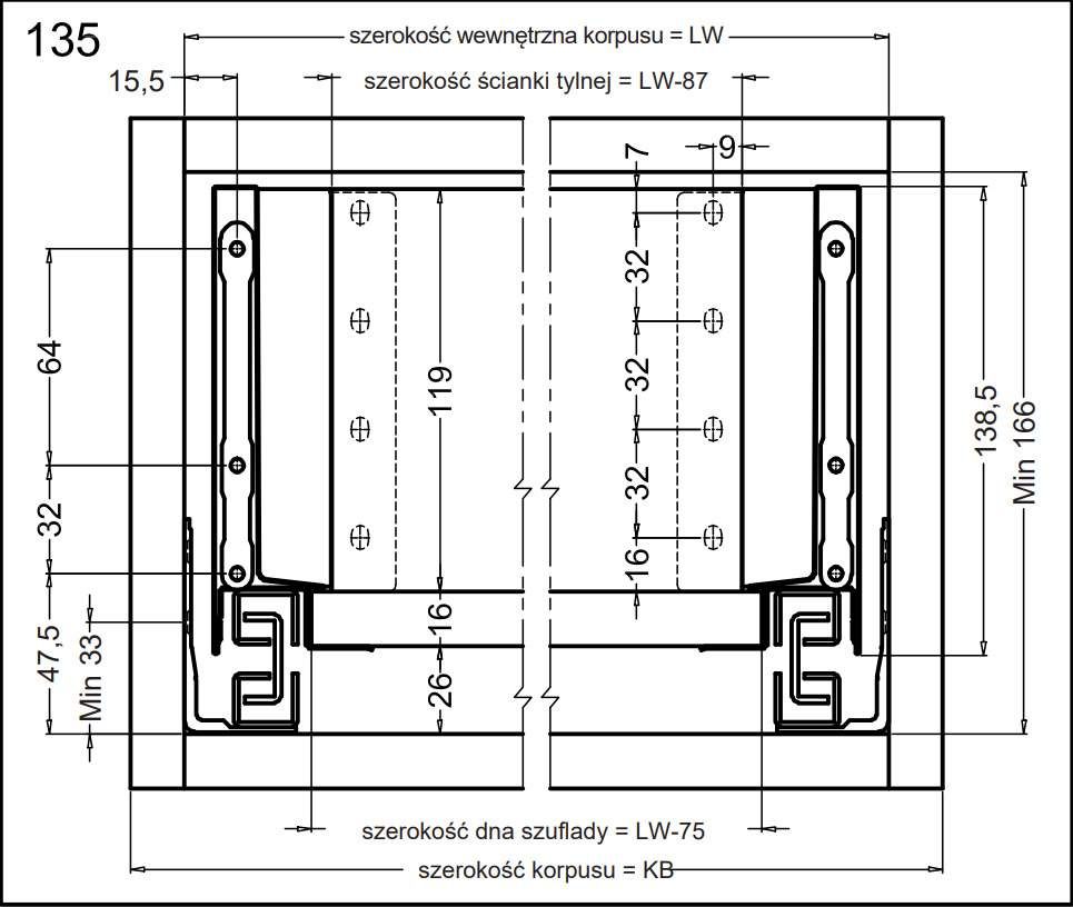 Комплект середньої шухляди Matrix S Slim 2.0 H135 L400, 35 кг, Білий, 514.13.823