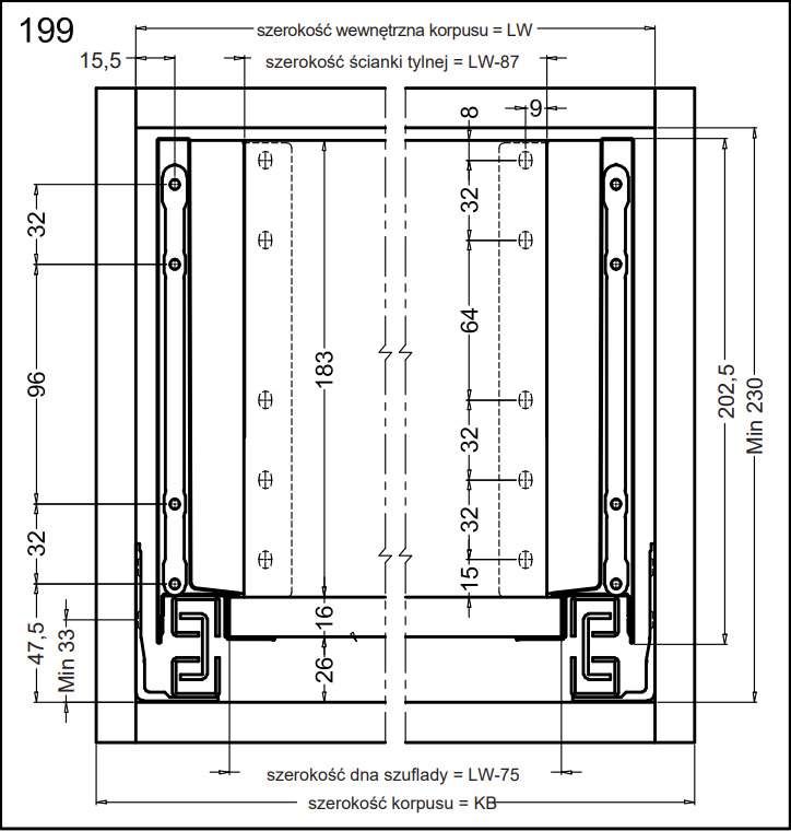 Комплект високої шухляди Matrix S Slim 2.0 з дотягом H199 L550 35 кг Сірий, 514.15.526