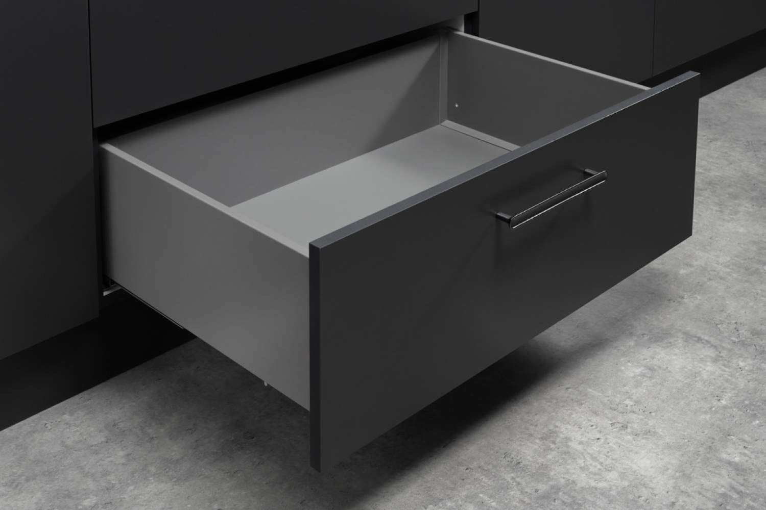 Переваги: Повний висув для повного огляду вмісту,м’яке закривання без ударів, надійна сталева конструкція