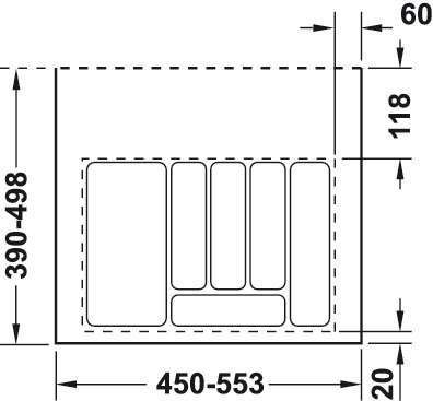 Лоток для столових приборів 600мм пластик колір: антрацит| (556.46.307) 3924100000