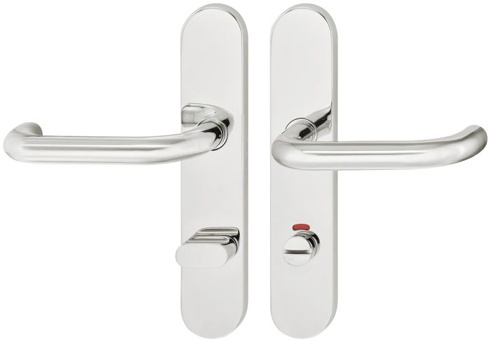 Набір дверних ручок, нержавіюча сталь, Hafele Startec, модель LDH 2170| подовжена накладка, комплект туалету, полірована, для дверей товщиною: 38-42 мм, (903.93.241)