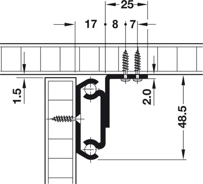 Посилання на встановлення: примітка щодо вибору кріплення висувного столу Довжина встановлення висувного кріплення столу дорівнює прибл. довжина рами/основи або прибл. 2/3 диаметр столу або довжини столу без подовжувачів