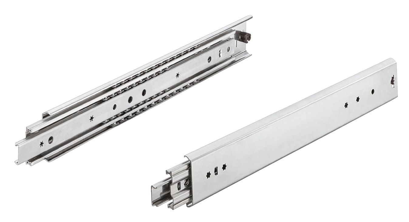 Направляюча на підшипнику, повного висування, сталь, з механізмом блокування в закритому положенні, бічне кріплення, довжина висування: 440 мм, монтажна довжина: 400 мм, вантажопідйомність: 97 кг, 420.72.906