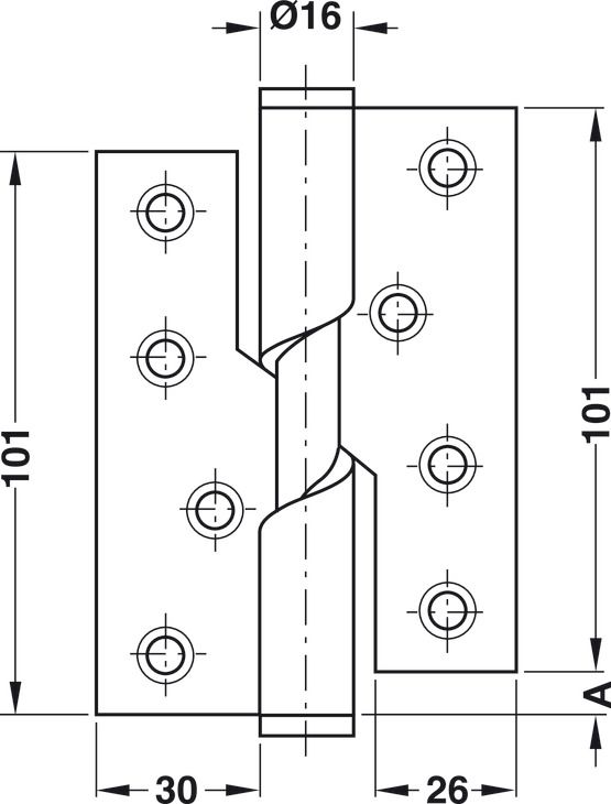 Петля врізна, для внутрішніх дверей до 40 кг, Hafele Startec| розмір 101 мм, висхідний, DIN прав, (926.26.103) 8302100090