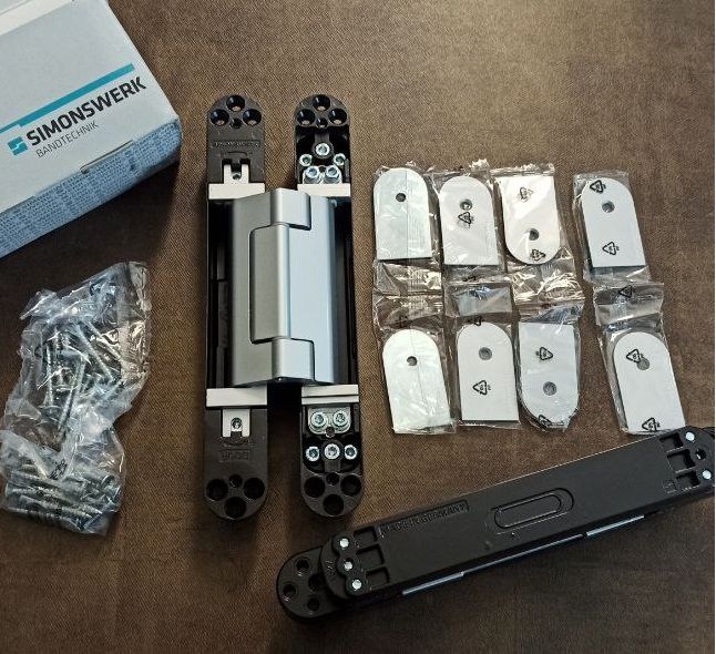Петля прихована, Simonswerk TECTUS TE 640 3D, для врізних дверей до 200 кг| прихований, 3D регулювання, розмір 240 мм, сріблястий колір, (924.17.423) 8302100090
