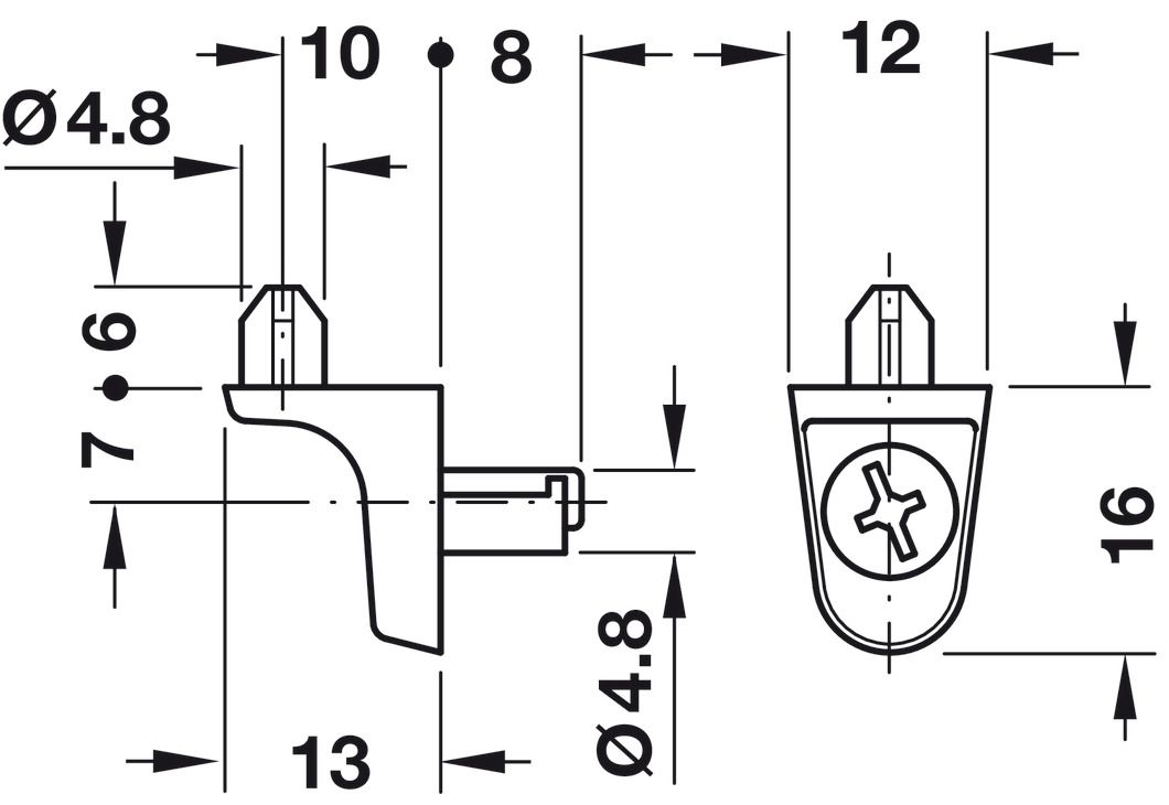 Полицетримач, для вставки в отвір діаметр 5 мм, сплав цинку| для деревяних полиць, з вушком і швидкодіючим затиском, навантаження 12,5 кг на шт., нікельований, (282.26.715) 8302420090