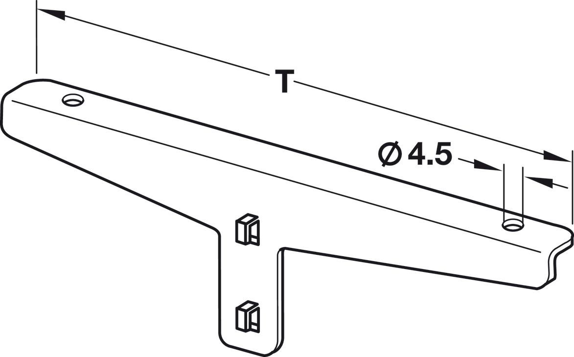 Підходить для: З 2 гачками та 2 отворами диаметр 5,0 мм З двома отворами диаметр 4,5 мм для кріплення деревяної полиці шурупами