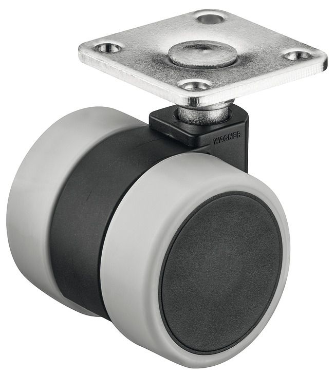 Подвійний ролик, вантажопідйомність 70 кг, керований, висота 52 мм, діаметр колеса RD 37 мм, протектор: м'який, колір: чорний/сірий, 661.23.722