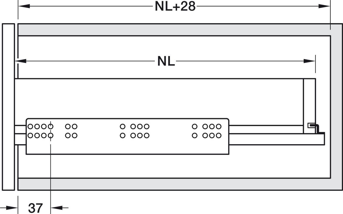 Прихована напрямна, Häfele Matrix Runner UM A 50, 500 мм повний висув, вантажопідйомність до 50 кг,з функцією Push-to-Open Прихована напрямна, Häfele Matrix Runner UM A 50, 500 мм повний висув, вантажопідйомність до 50 кг,з функцією Push-to-Open
