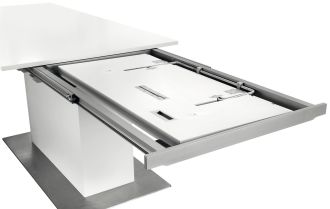 Роликові напрямні, з висувною рамою, для 1 відкидної висувної стулки, для столів з рамою| З синхронізованим приводом для фіксованої ніжки столу, Монтажна довжина: 1800 мм, (642.29.940)