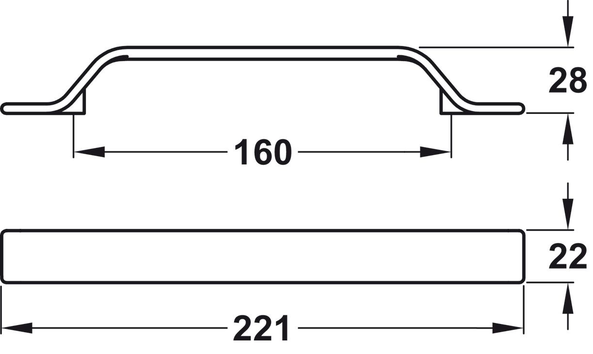 Ручка-дужка,цамак,матовий чорний колір, RAL 9003, довжина: 221 мм, відставнь між отворами: 160 мм, висота: 28 мм, 132.16.311