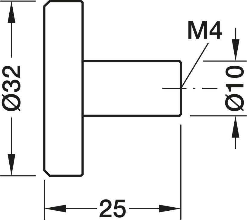 Ручка-кнопка,нержавіюча сталь, матова, вигляд вживаного матеріалу, лакована, чорна, висота: 25 мм, діаметр ручки: 32 мм, 100.00.204