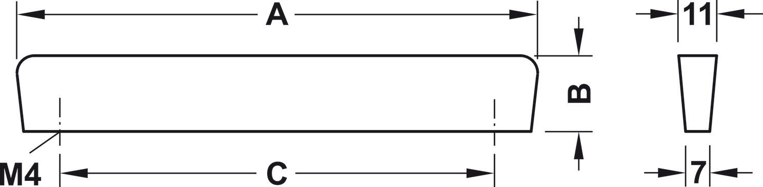 Ручка-планка, цамак,чорний колір, RAL 9005, порошкове покриття, матове, розмір A: 86 мм, розмір B: 22 мм, розмір C: 64 мм, 111.44.100