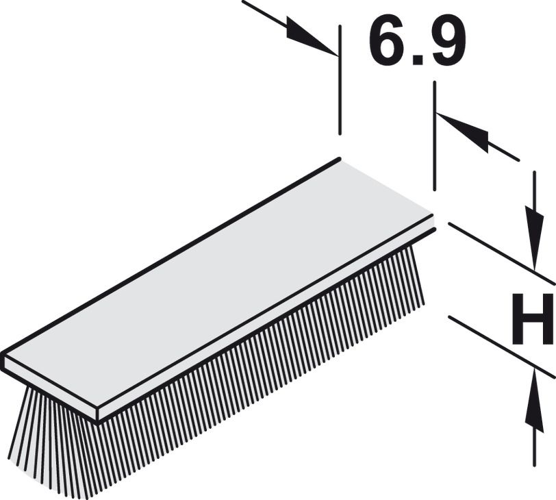 Щітковий ущільнювач, для розсувних дверей, довжина: 2500 мм, Висота: 9 мм, Ширина: 6,9 мм, телесірий колір, аналогічний RAL 7045, самоклеючий, 403.54.502