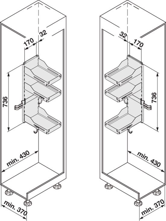 Система зберігання очисних матеріалів, сталь| Антрацит, розмір: (Ш x Г x В): 351 x 230/365 x 752 мм, (520.83.352), аналог до арт. (520.83.952), 8302500000