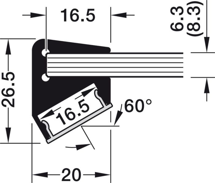 Скляний крайовий профіль, Профіль 5101 для світлодіодної стрічки 10 мм| Профіль 5101 для світлодіодних стрічок, алюміній, профіль: чорний анодований, довжина: 2500 мм, для товщини скла: 8 мм, (833.02.696)