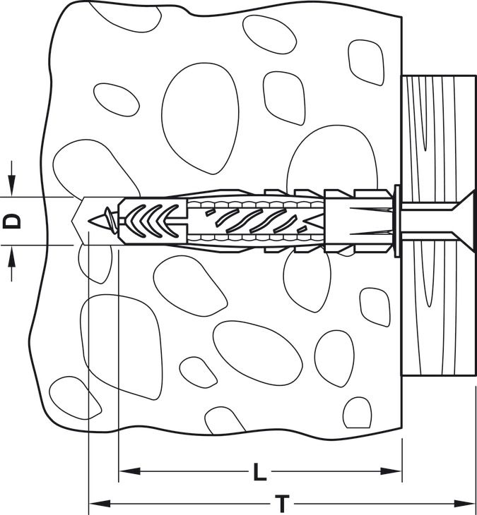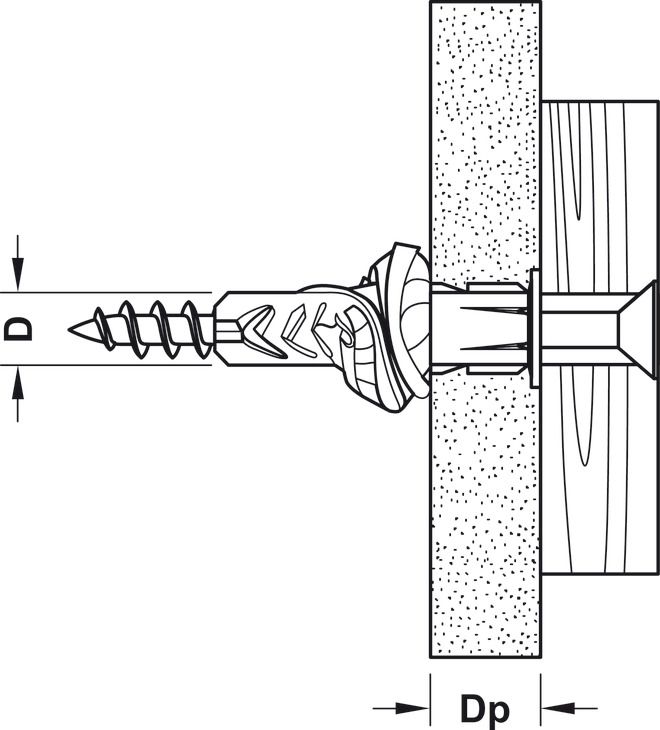 Інструкції з складання: Необхідна довжина шурупа: товщина компонента + довжина анкера + 1 x діаметр шурупа. Для порожнистих будівельних матеріалів: обертальний рух (без удару). Для гіпсокартону: свердліть лише металевими свердлами.