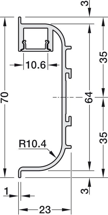 Ручка профіль C-подібна з інтегрованим світлодіодним профілем , колір нержавійка, довжина: 2500 мм, 126.00.010