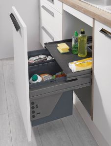 Відро для сміття з двома відділеннями, 2 х 11 літрів| Монтаж позаду фасадів, пластик, сірий, для шафи шириною 450 мм, об’ємом 2 x 11 л, (503.76.311) 3924900090