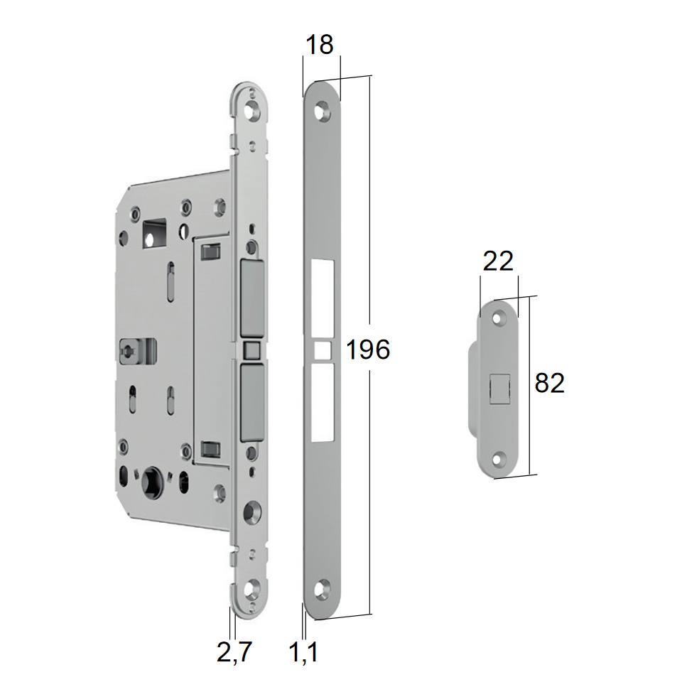 Замок магнітний MATCH WC хром матовий, 196x18 -для дере'яних дверей, 911.29.126